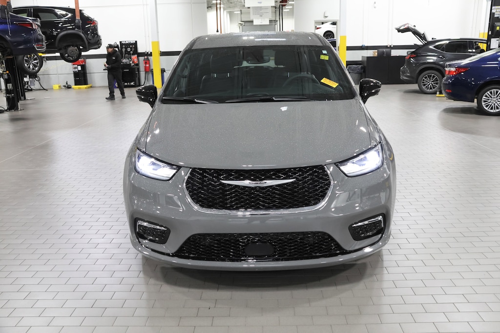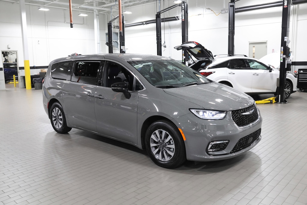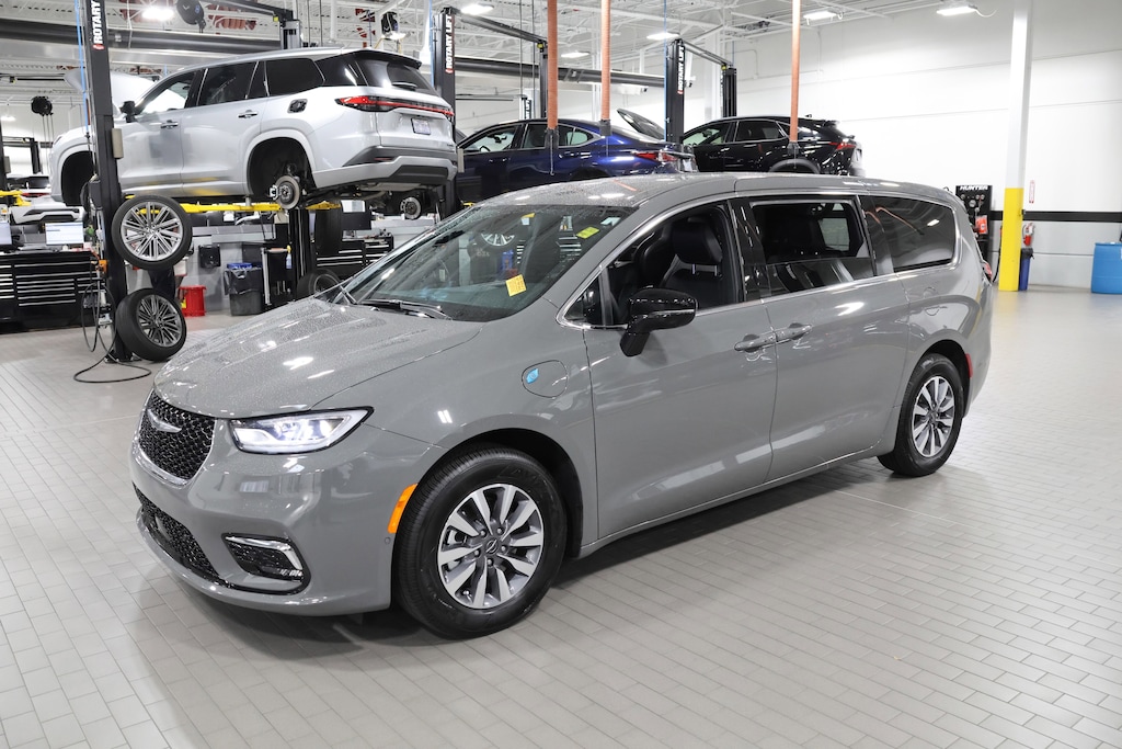 SAFETY SPHERE 360 Surround View Camera System, Parallel & Perpendicular Park Assist w/Stop, ParkSense Front/Rear Park Assist w/Stop, TRANSMISSION: EFLITE SI-EVT (STD), ENGINE: 3.6L V6 PLUG-IN HYBRID (STD). Chrysler Hybrid Select with Ceramic Gray Clearcoat exterior and Black interior features a V6 Cylinder Engine.