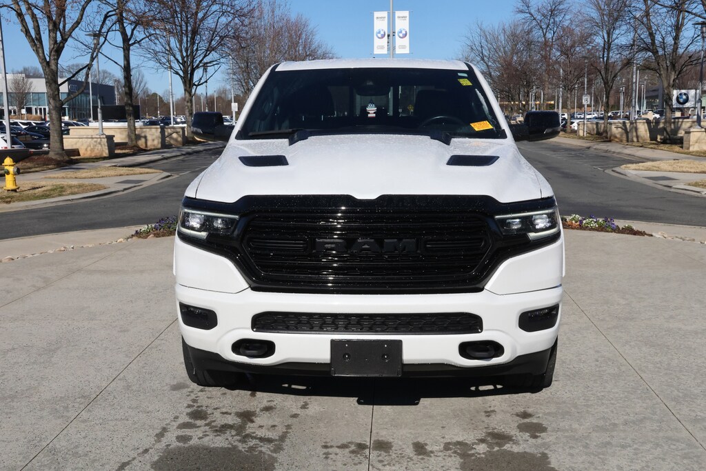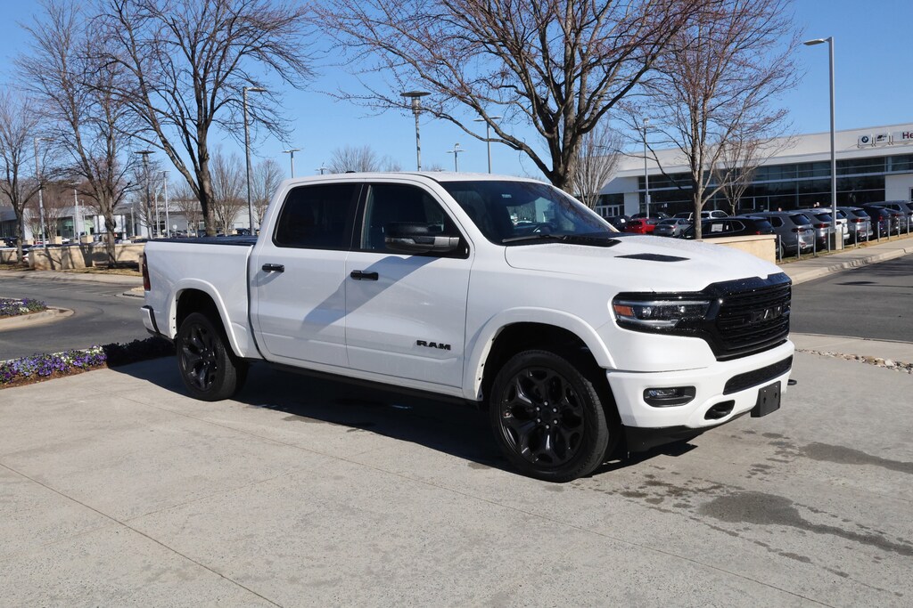 NIGHT EDITION Wheels: 22 x 9 Black Aluminum, Tires: 285/45R22XL BSW All Season, Tri-Fold Tonneau Cover, Black Headlamp Bezels, Accent Color Door Handles, Body Color Front Bumper, Body Color Rear Bumper w/Step Pads, RAM Grille Badge - Black, Black Painted Exterior Mirrors Caps, Accent Color Premium Power Mirrors, Sport Performance Hood, harman/kardon® 19 Speaker Premium Sound, Black Exterior Truck Badging, Black Day Light Opening Moldings, Tow Hooks, Dual Exhaust w/Black Tips, Black Grille Surround Texture 7 Black, ANTI-SPIN DIFFERENTIAL REAR AXLE, TRANSMISSION: 8-SPEED AUTOMATIC (8HP75) (STD), ENGINE: 5.7L V8 HEMI MDS VVT ETORQUE Delete Alternator, 18 Aluminum Spare Wheel (STD). Ram Limited with Ivory White Tri-Coat Pearlcoat exterior and Black interior features a 8 Cylinder Engine with 395 HP at 5600 RPM*.